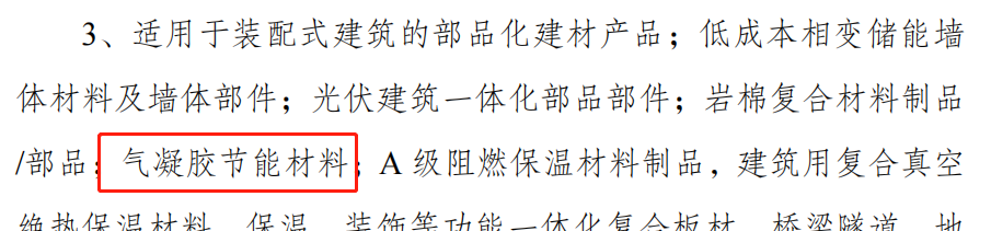 在關(guān)于加強(qiáng)綠色低碳重大科技攻關(guān)和推廣應(yīng)用方面,意見指出:加快先進(jìn)適用技術(shù)研發(fā)和推廣。推動(dòng)氣凝膠等新型材料研發(fā)應(yīng)用。